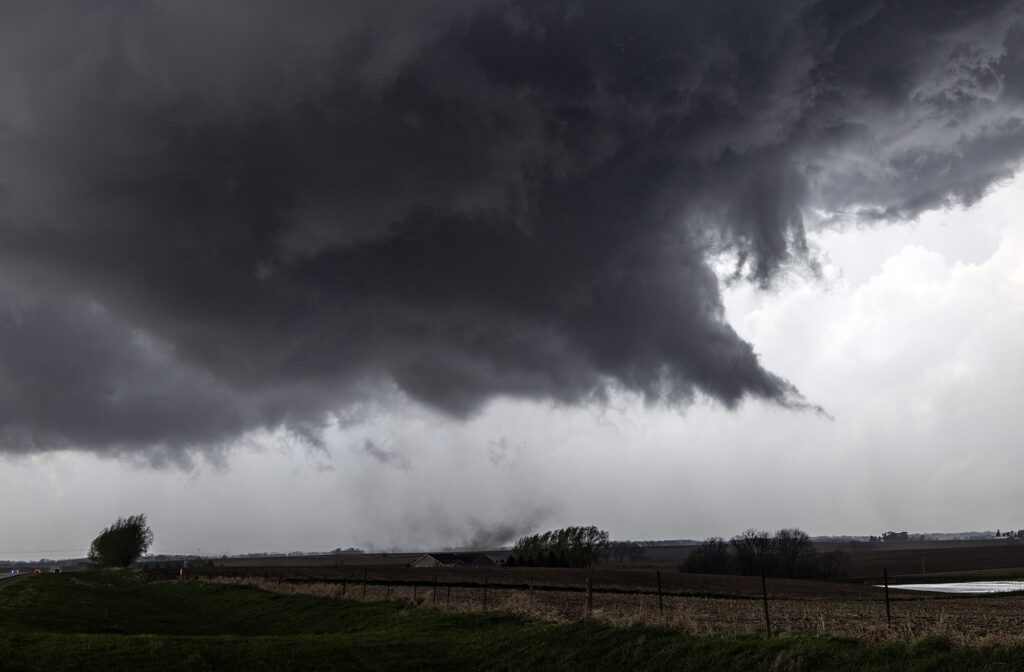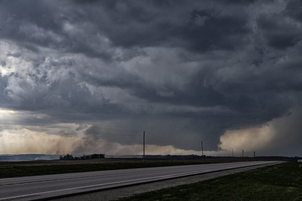 April 14th kept us in the northern plains. The same synoptic warm front/triple point from the 13th, was evident on the 14th centered northwest of Des Moines, Iowa. By mid afternoon storms formed there and intensified as they moved northeast. Near Eldora, Iowa, one supercell cranked up quickly and spun like a top. A rotating wall cloud formed, spinning wildly, and dropped a tornado that skipped across the ground for about 10 minutes causing some damage to farm buildings. After the storm occluded, the cell moved east towards Waterloo and kept having cell mergers which interfered with it’s ability to produce more tornadoes. East of Waterloo, near Masonville, it cranked back up and became tornado warned. A lowering/truncated cone funnel formed and wrapped quickly with rain. It touched down producing some minor damage as it stayed on the ground for several minutes. After it lifted, the storm became rain clogged as more cells developed merging with the parent supercell. At this point, having to be back in Denver the next day, we dropped south to Iowa City and headed west to Lincoln, NE for the night (arriving after midnight!). As did dropped south, another supercell developed a hook and became tornado warned as well. We could see the lowering, which 30 minutes later produced a pretty 3 minute tornado, as we headed westbound for the night. Overall a fun day, great storms, messy tornadoes, but everyone enjoyed it! Enjoy the pics! Video coming soon too!
